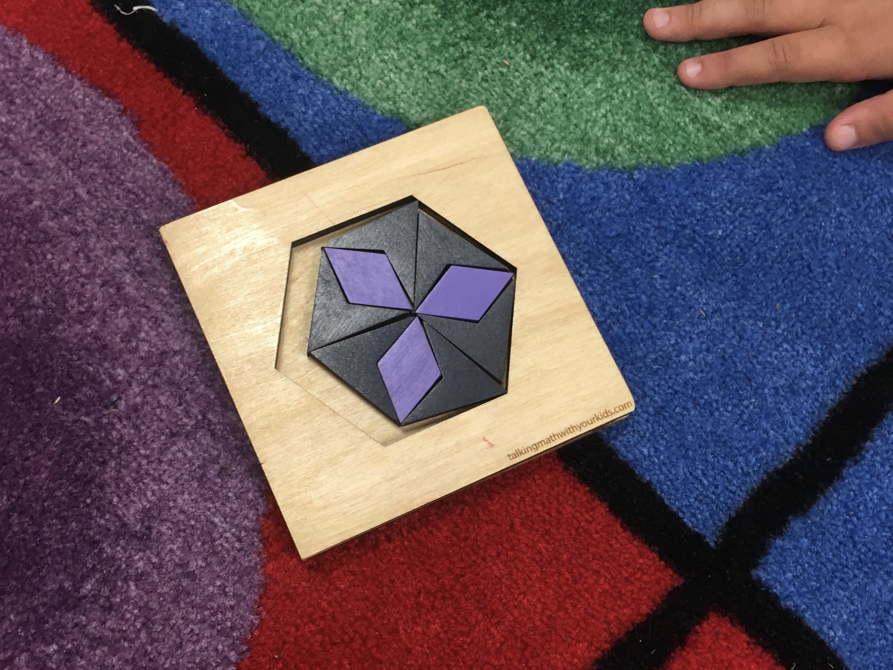 For the days remaining in May, I’ve thought about how this routine they’ve already bought into can facilitate further mathematical thinking. Building off this as a warm up or cool down in math, thinking about the possibilities for the next new shape that will appear? Look more closely at the data we’ve collected for new patterns we see? (I’ve been really curious if they’ll make the connection that green < 1/2, orange = 1/2, and purple > 1/2 – or if that’s even an important thing to notice). We’ve tried a few of those ideas, as documented below.