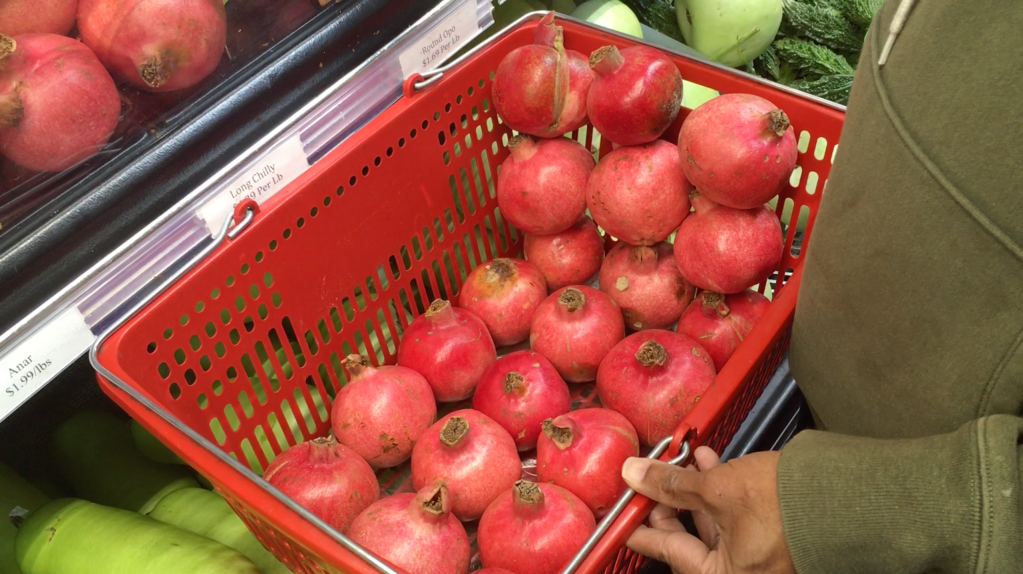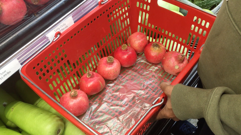 Focus question: How many pomegranates will fit in the bottom of the basket?